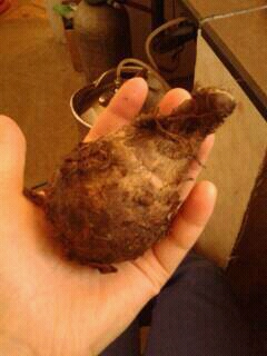 日本の里芋より粘り気がなくって、パッサパサしていて、もったり実がつまっているのね。