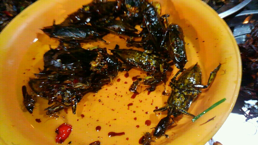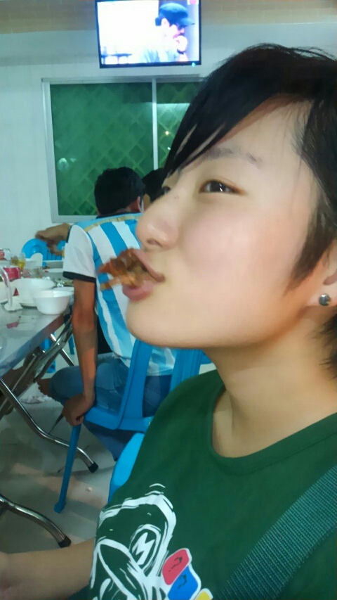 2014/07/25 Category : ちょい冒険した 虫ゃ虫ゃっ! なぁーんか過去の日記を見返してみると楽しそうにしてんな自分(^ー^)となりました。だけど実際は悶々したりだらだらしたりむしゃむしゃしてはいひひな日々なんですよ。人間だもの!良くも悪くも生活に慣れてどろっとしてきたよ、スオスダーイ!それから食うか食わないかで悩むけど食う、という食生活から自然とグルメ日記化してきているなとも思ったり。もうお店紹介していくべきだなこりゃーちなみに明日はゲストハウス界隈のベジタリアンレストランを5つくらい回るつもりだよ!何故か!それはつい先日、まさに野菜しか食べませんっていう菜食主義のドイツ人女性が2人、ゲストハウスに来られたのです。(そういうお客様にとっても快適な旅になるようせんとな!)と思い、明日はお店巡りに走る予定。そしたら「こちらのレストランだと安心してお腹一杯なりますよ」って案内できるもんね(^ー^)にしてもそれ今日にでも出来たな。最近そういうエンジンのかからなさを痛感する。行動力ないな、ちくしょ(^p^)さーて、そいから前回の日記を書いてから良いもの見つけました。こいつです。どんな胸囲でもどんとこいですな!ちなみに"4秒吸って8秒吐く"って呼吸法もやってたら腹筋まわりのお肉が良い感じにスッキリしてきて、5日くらいでアンダーがマイナス3になった\(^o^)/問題は背中から腰にかけての肉なんだよな。あれってどうやったらとれるの。とかなんとか言っておきながら食レポいきやす\(^o^)/最近ハマっとるのは虫さん!昨夜は定番のコオロギと、こいつに挑戦!なんかすっごいでかい。から、さすがに気持ち悪くて口に運ぶのにも勇気がいる。サッ ムール!(Let''s try!)虫ゃっ!(ムシャッ!)今回ははずれでした。なんか甘辛い味付けなのは良かったんだけど、でかいだけで食べるとこ少なかったし殻ばっかりだったよ。それに屋台によって味付けが微妙に違うのか、その日行った屋台の味はあんまし美味しくなかった。なんか虫みたいな味だった。食べ比べしてみて、どこの屋台のが美味しいのか探求してみよ! [0回]PR